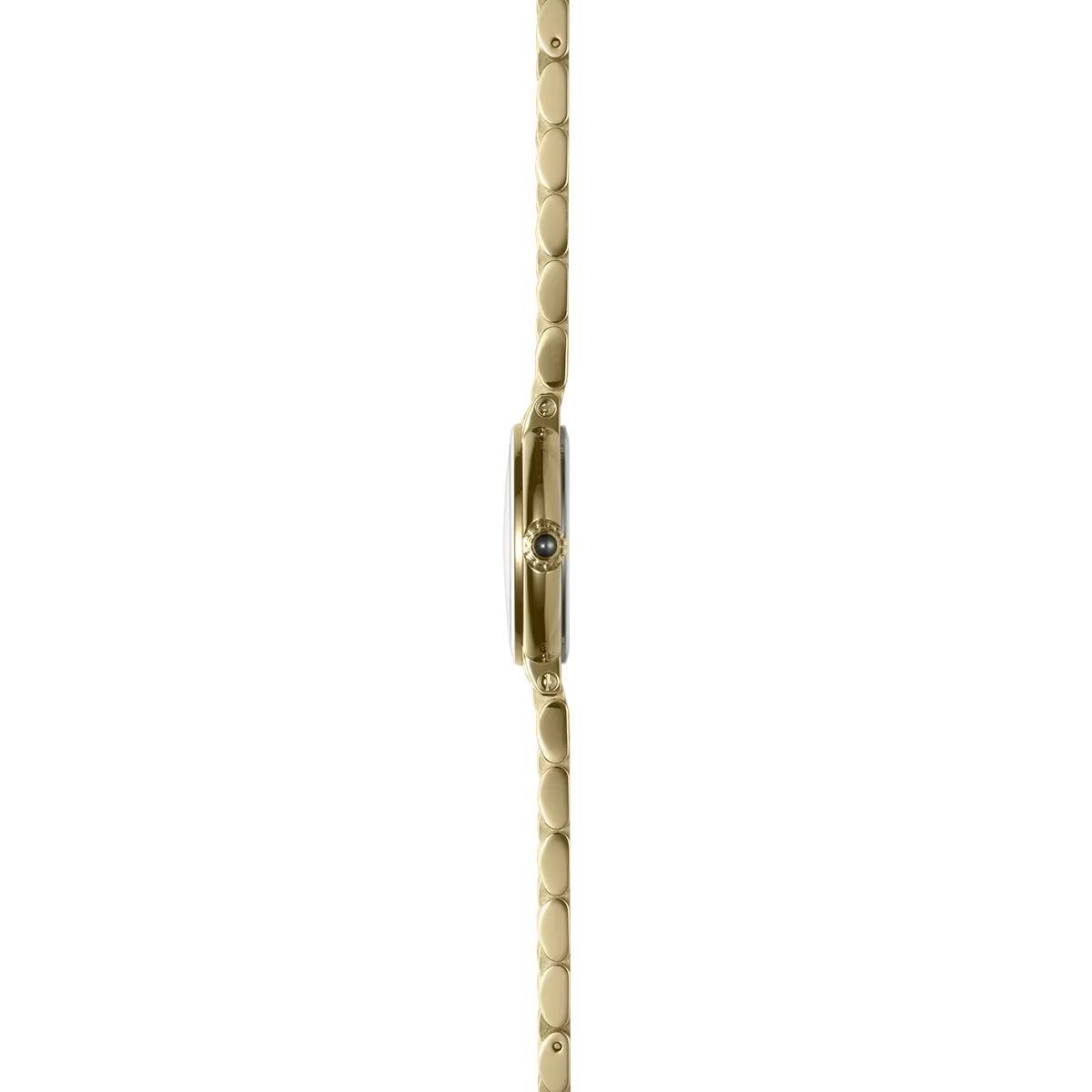 Le bracelet en acier PVD Or Jaune est doté d'une boucle déployant. Il épouse parfaitement le poignet, prolongeant les courbes douces du boîtier et assurant un confort optimal tout en ajoutant une note de raffinement discret. Chaque détail de cette montre est pensé pour refléter la beauté de la nature, faisant de ce modèle un accessoire de choix pour les femmes actives.