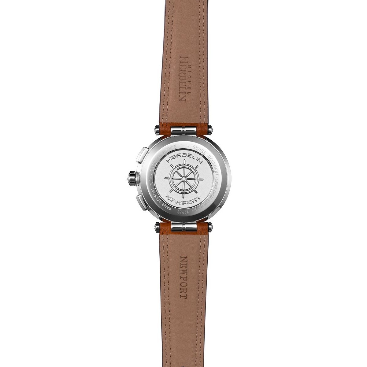 Esprit chic et architecture racée pour cette Newport, modèle emblématique Michel Herbelin. Le cadran de couleur bleue soleillé accompagné de ses compteurs accentue son allure sport chic. L'acier de son boitier s'accorde à merveille au bracelet en cuir marron.