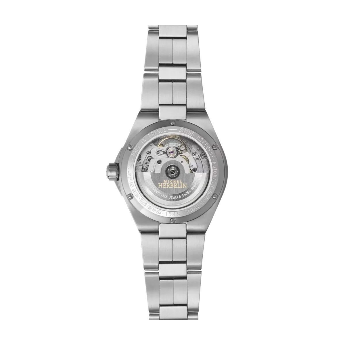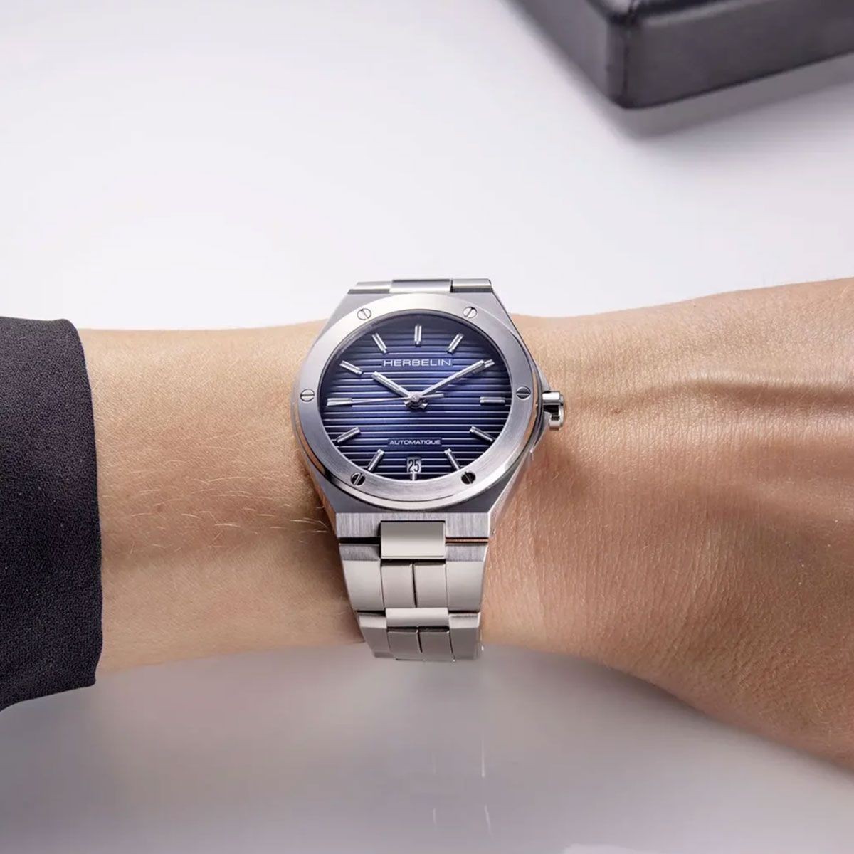 Herbelin agrandit sa collection Cap Camarat avec sa toute première version féminine. Conservant l'allure chic et sportive de la collection, cette montre présente une forme hexagonale en acier inoxydable dont le brossé vertical est mis en relief par des facettes polies. Le fond bleu frappé à l'horizontal apporte une touche d'élégance et de raffinement à ce modèle Cap Camarat. Herbelin signe toutes ses collections dans ses ateliers de Charquemont, chaque montre est issue d'un savoir-faire traditionnel français.