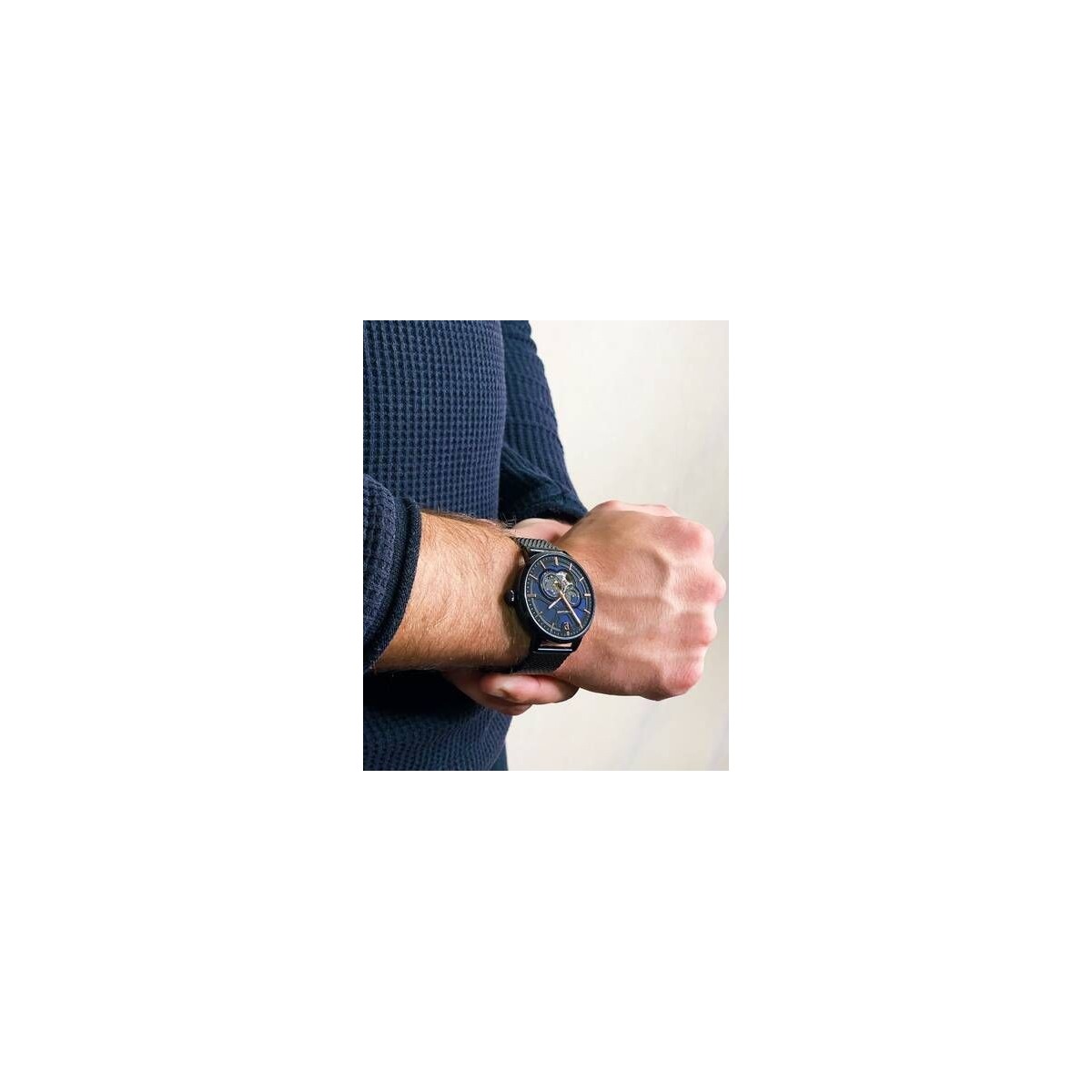 Pièce phare de la collection Trio, la montre Homme 335B469 acier milanais noir, possède un aspect résolument moderne, grâce à des jeux de structures et de matières. Son mouvement automatique multifonction Miyota 82S7 est synonyme de performance et idéal pour les amateurs de très belles pièces horlogères.