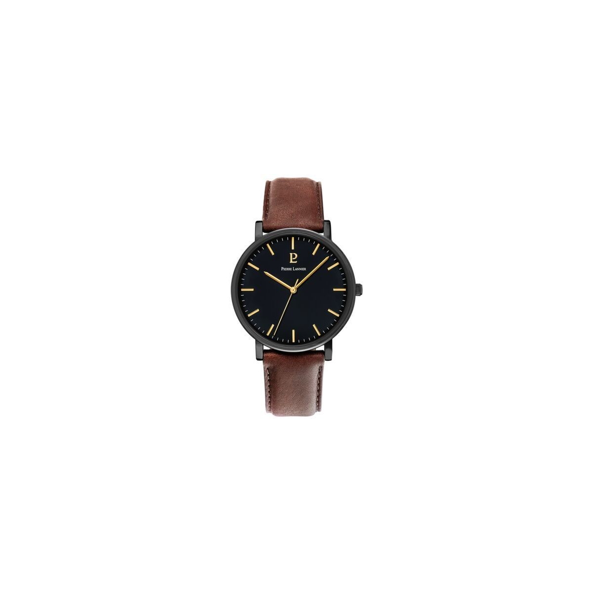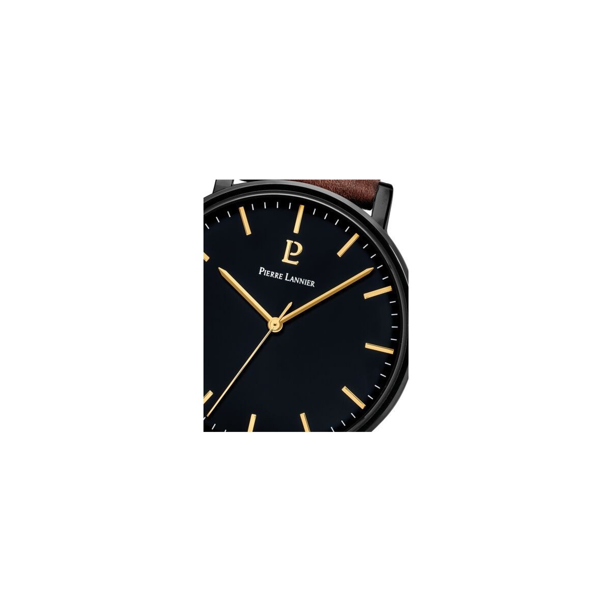 Son cadran noir, associé à un boîtier rond en acier inoxydable noir, d`un diamètre de 40,5 mm, confère à cette montre une présence distinguée. Les index et les aiguilles dorés ajoutent une touche de raffinement à son design épuré.