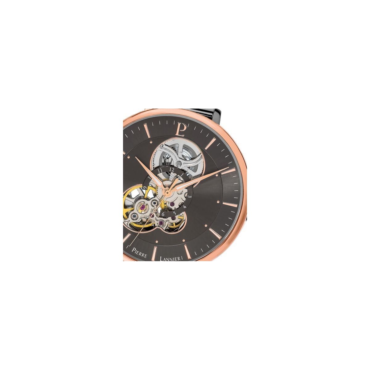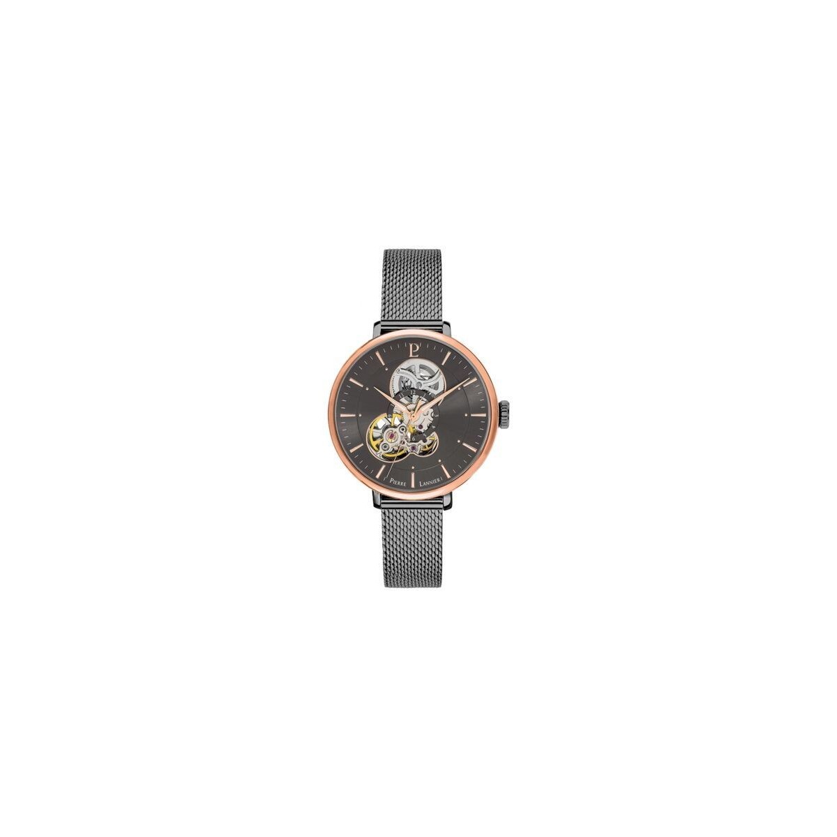 Le boitier de la montre Femme Mélodie 348A739 est en acier poli inoxydable rond, de couleur grise et de 37 mm de diamètre. Il renferme un cadran gris foncé, avec ses index et aiguilles doré rose. Les chiffres positionnés sur un anneau central découpé au niveau du balancier facilitent la lecture. Tout comme les points qui prolongent les index. Admirez le mouvement automatique de cette montre, à travers son cadran et rechargez la grâce aux mouvements de votre poignet.