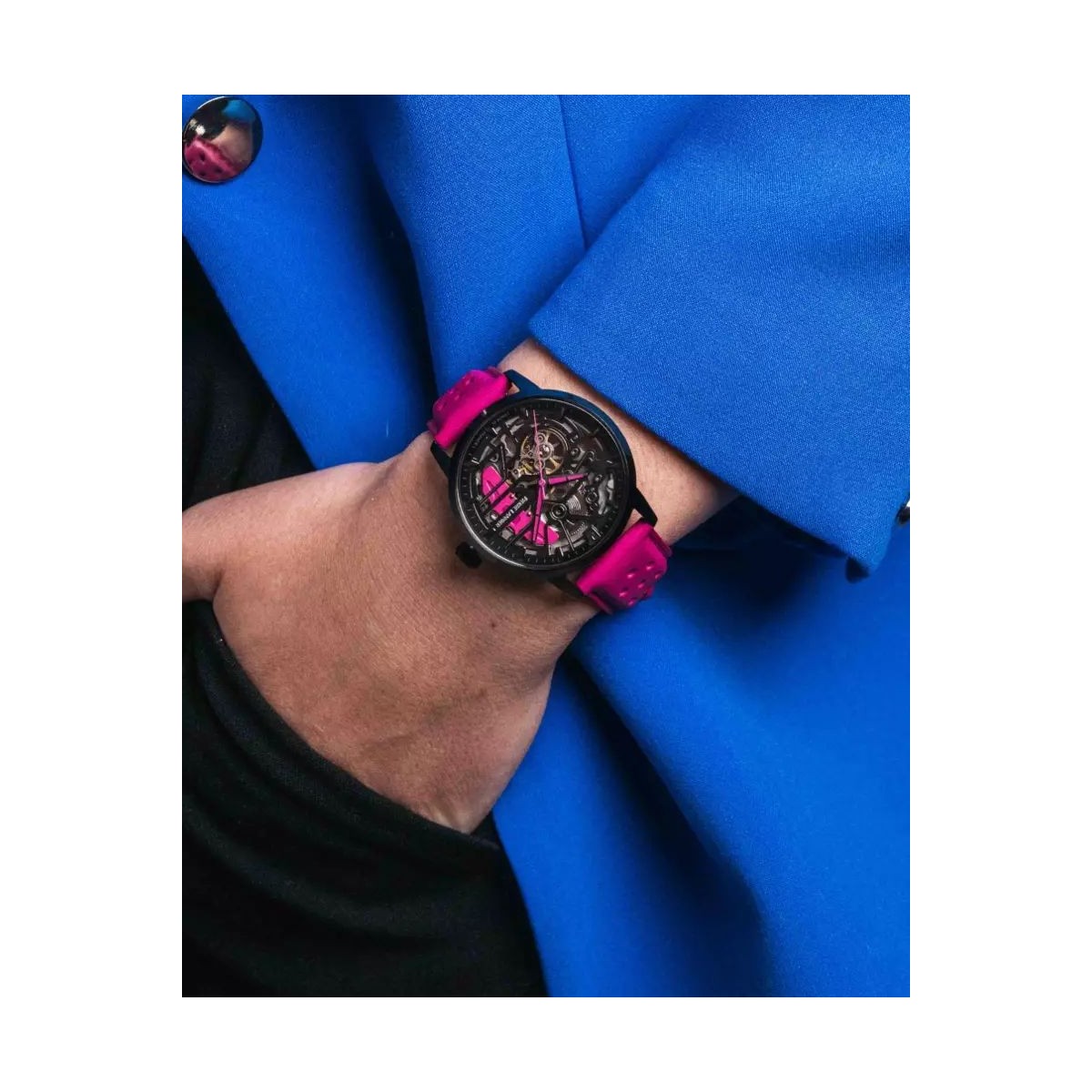 Affirmez votre style avec la Paddock Femme 145G895, une montre au caractère fort et résolument féminin. Son étrier de frein rose fuchsia intense, associé à un bracelet en cuir perforé rose éclatant, lui confère un look puissant et ultra-moderne. Fabriquée en France, elle incarne l'élégance sportive par excellence.