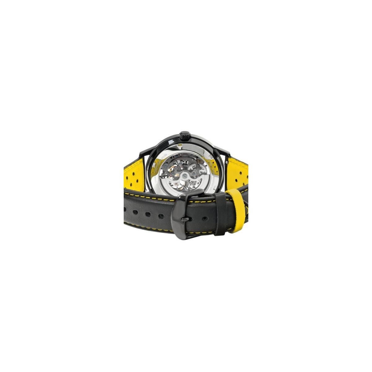 Explorez la montre homme Paddock 338A443 qui incarne le sportif moderne. Dotée d'un mouvement automatique, elle arbore un audacieux cadran noir et un bracelet en cuir noir perforé de petits trous, rehaussé par une doublure jaune vibrante. C'est l'alliance parfaite de style et de fonctionnalité pour l'homme dynamique en quête d'une montre distincte.