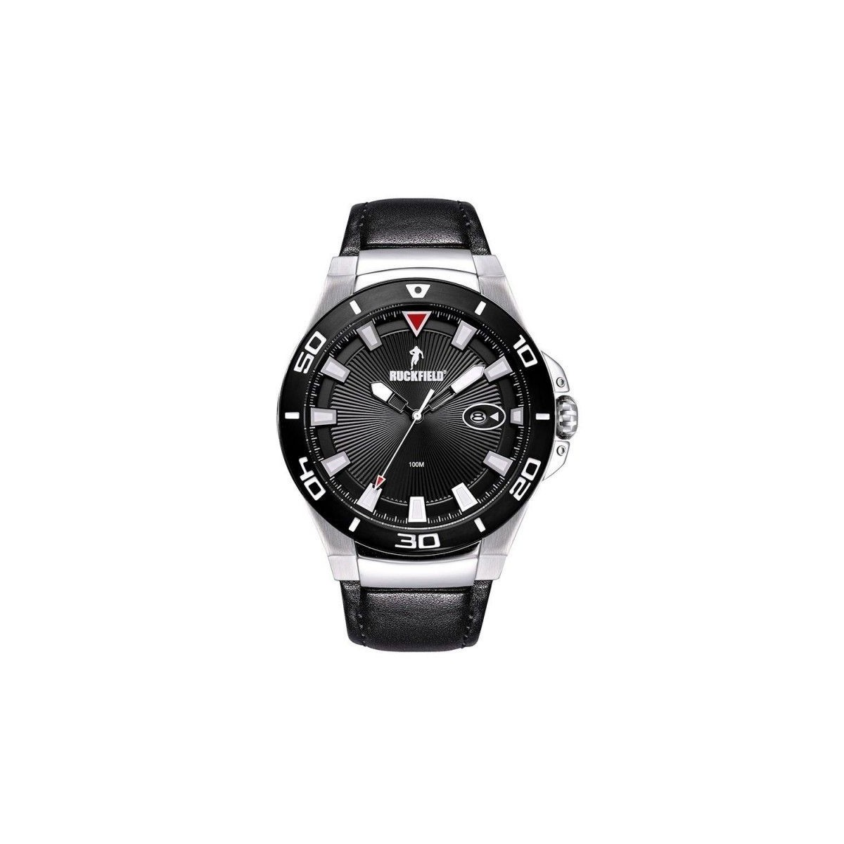 La montre Ruckfield 685075 est une montre sport étanche, très résistante pour les hommes de Caractère. Sa conception lui donne une grande résistance aux chocs. Elle est équipée d'un bracelet en cuir véritable couleur noire, la couronne est protégée, le boitier et le fond sont en acier.