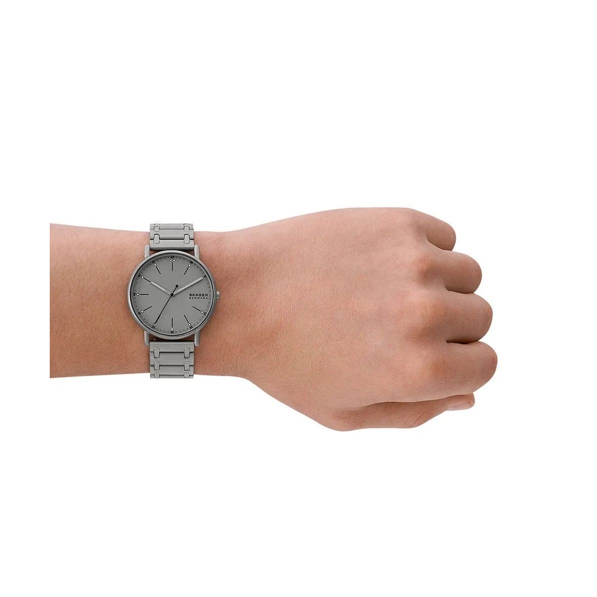 Montre-bracelet en acier inoxydable anthracite à trois aiguilles Signatur.
