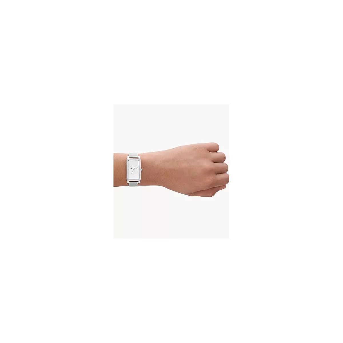 Montre rectangulaire à trois aiguilles en maille d'acier inoxydable Hagen.