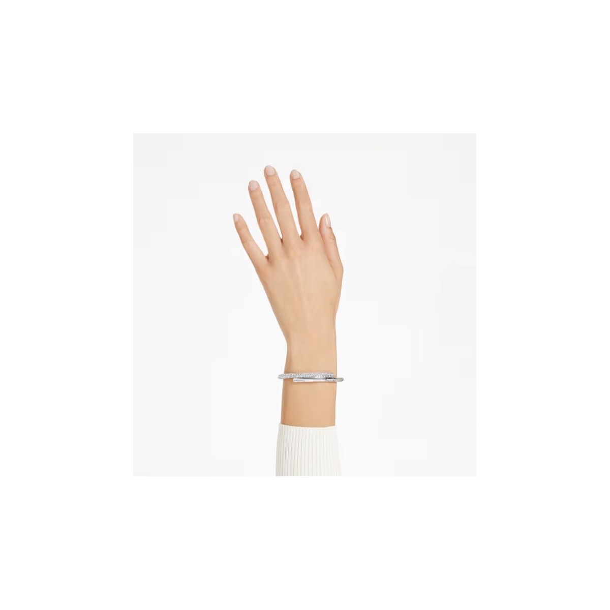 Avec son design unique, comme une boucle élégante qui viendrait envelopper le poignet, ce bracelet-jonc a le pouvoir de transformer votre style. Son design allie magnifiquement esprit classique et touches contemporaines, avec une bande en métal rhodié ornée d'un pavé transparent sur une moitié. Pour une finition impeccable, ce bracelet est doté d'un fermoir magnétique dissimulé. Une pièce luxueuse qui réveillera assurément toutes vos tenues de lumière.