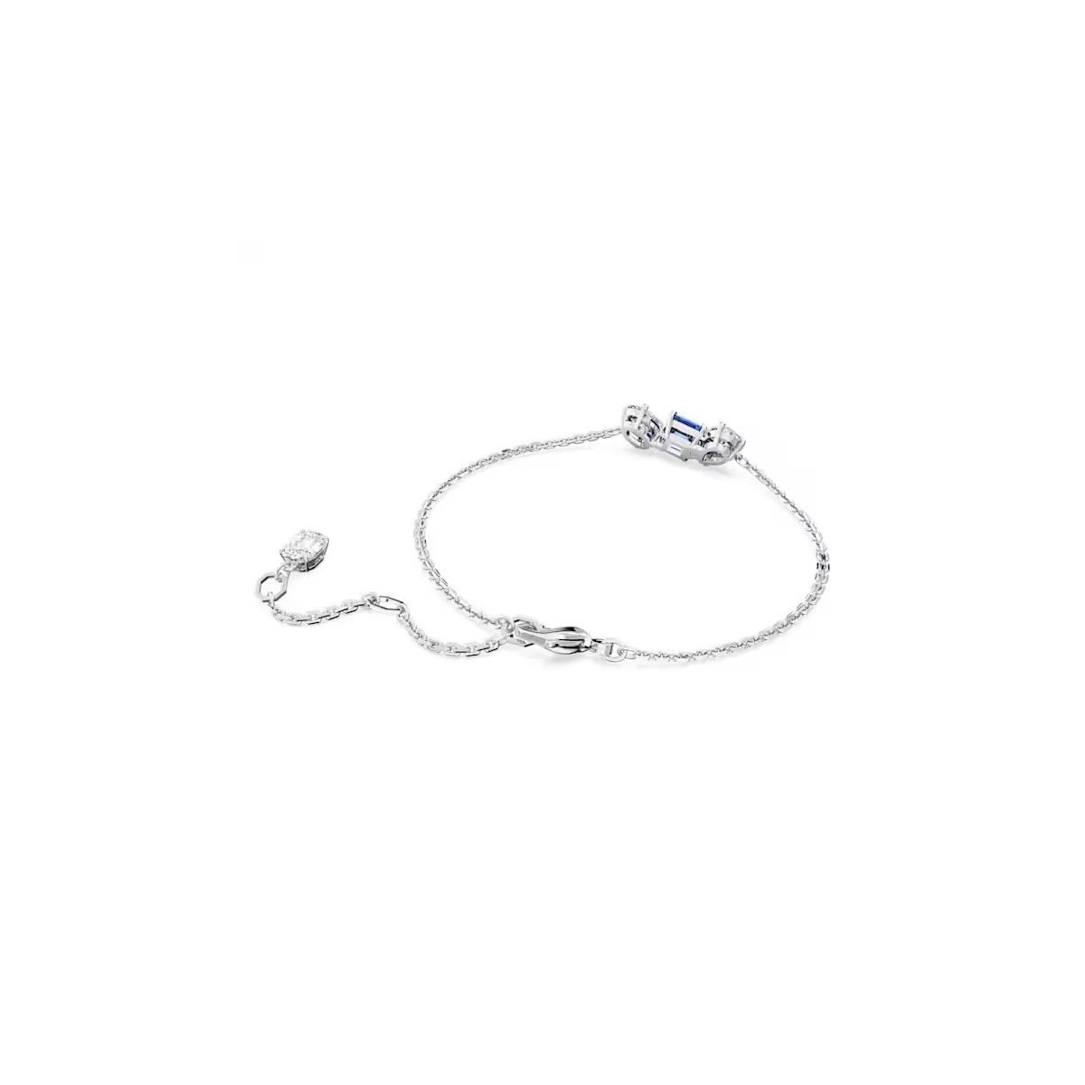 Accentué d'un éclat de couleur vive, ce bracelet Mesmera ne manquera pas de faire bonne impression. Son design en métal rhodié qu'arbore une fine chaîne et son extension comporte un trio de Zirconia Swarovski de différentes formes, montés sur un sertissage à griffes avec, en son centre, une pierre carrée de teinte bleu vif. Un mélange de tailles audacieux pour un cadeau merveilleux.