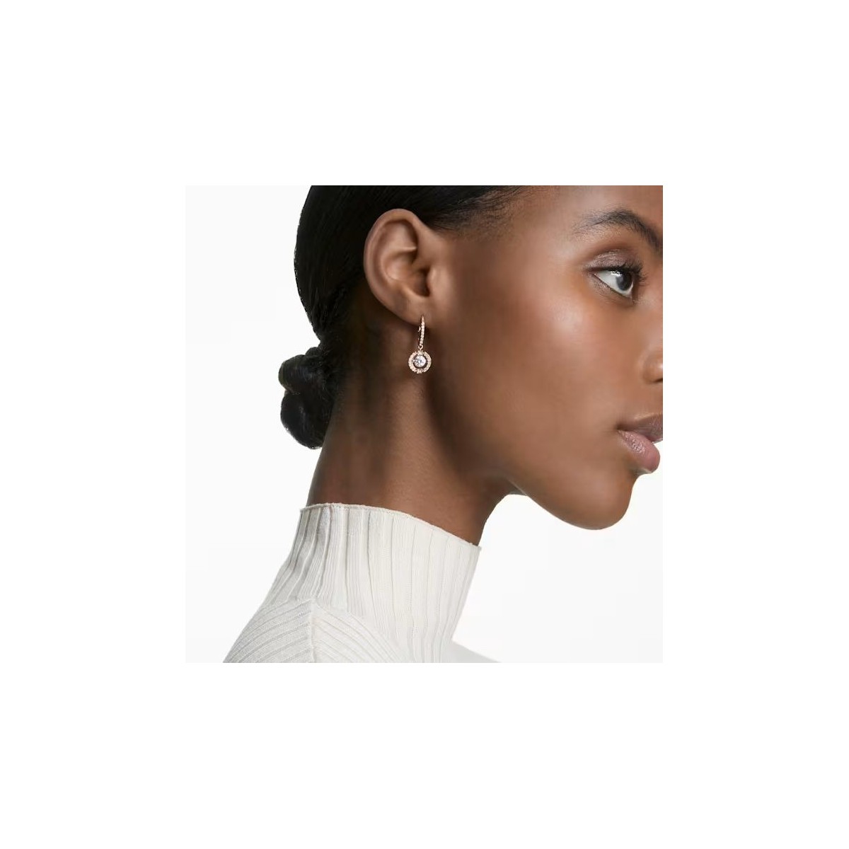 Cette paire de boucles d'oreilles Una issue de notre collection Sparkling Dance est merveilleusement belle. La pierre dansante centrale semble flotter dans son sertissage en métal doré rose orné d'un pavé scintillant. Un joli cadeau pour des moments spéciaux. Ces boucles d'oreilles créent un fabuleux kaléidoscope de reflets au moindre rayon de lumière.