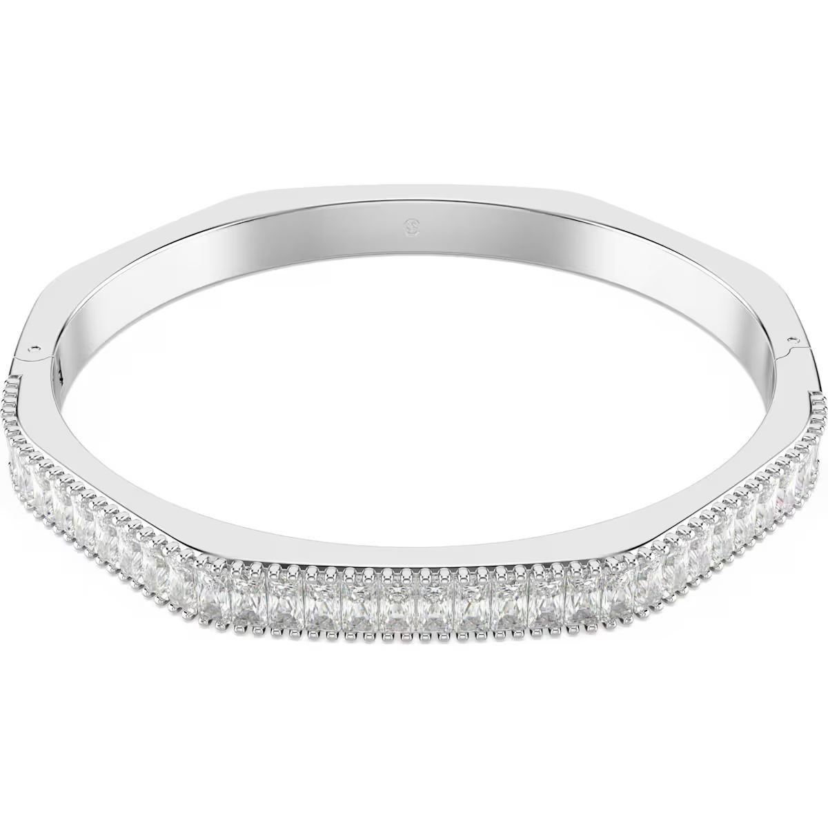 Révélez votre style au quotidien avec ce bracelet-jonc Matrix à charnière. Ce design en métal rhodié reprend la forme octogonale emblématique de Swarovski et s'orne magnifiquement d'un dégradé de Swarovski Zirconia incolores taille baguette, sertis verticalement. Parfait en accumulation avec d'autres bracelets-joncs Matrix assortis, il se pare entièrement d'éclat pour exprimer toute votre élégance.