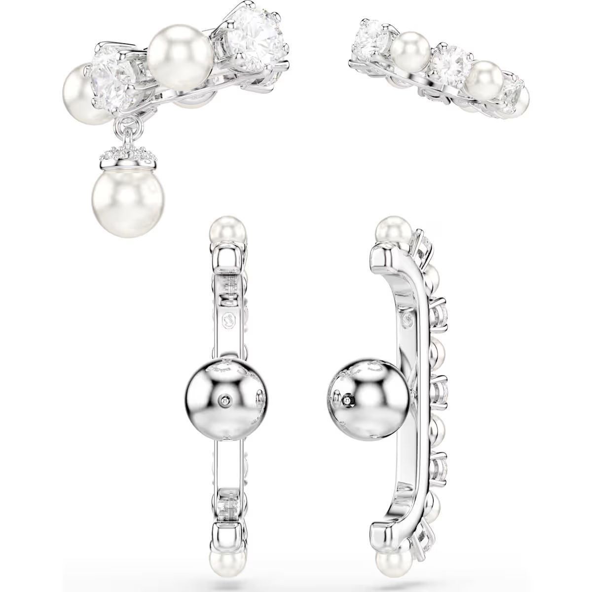 Quatre fois plus d'élégance avec cette parure sublime. Composée de deux boucles d'oreilles percées et de deux bijoux en métal rhodié, elle est ornée d'une variété de boucles d'oreilles Swarovski Zirconia taille ronde et de Crystal Pearls de Swarovski, le tout pour une allure à la fois moderne et captivante. Amusez-vous à modifier le positionnement des bijoux pour créer un look qui vous ressemble.