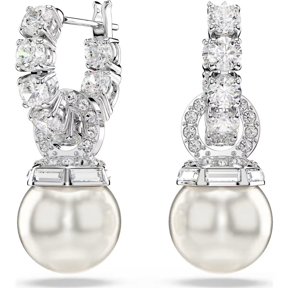 Amplifiez l'élégance de votre style avec ces boucles d'oreilles percées Matrix. Ces pièces en métal rhodié sont composées de créoles tennis et d'anneaux de fixation ornés d'un pavé étincelant, tandis que les Crystal Pearls de Swarovski ajoutent une touche classique d'un raffinement absolu. Une réinterprétation d'un look intemporel à porter en toute occasion.