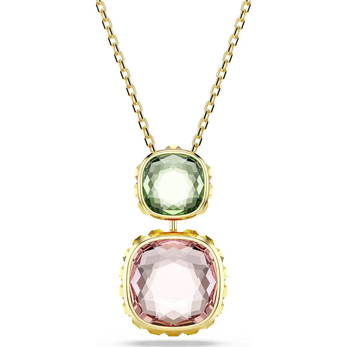 Peu importe la couleur qui correspond à votre humeur, ce pendentif vif Chroma Twist saura y répondre. Ce design est plaqué de ton ou s'attache à la chaîne avec un cristal Swarovski ReCreated™ vert. En dessous, le design réversible vous permet d'afficher au choix un cristal Swarovski ReCreated™ bleu ou un cristal rose intense. Inversez les cristaux pour assortir ce pendentif à votre style et portez-le avec d'autres bijoux Chroma Twist pour un look résolument joyeux. Les bijoux Chroma Twist contiennent au moins 50% de cristaux Swarovski ReCreated™, et il s'agit de notre première collection conçue dans une optique d'économie circulaire.