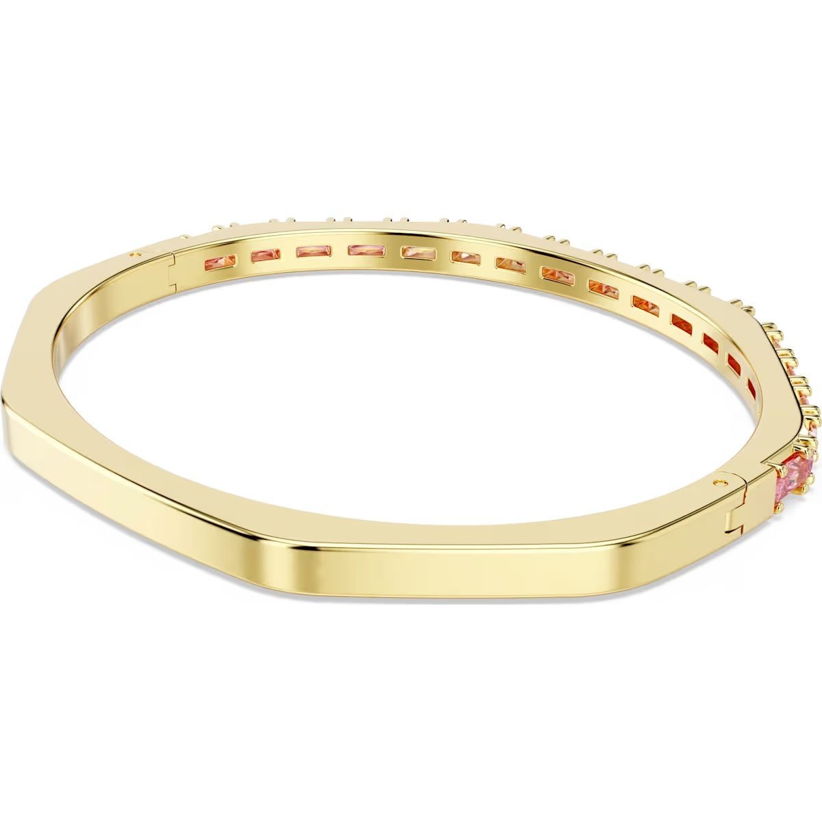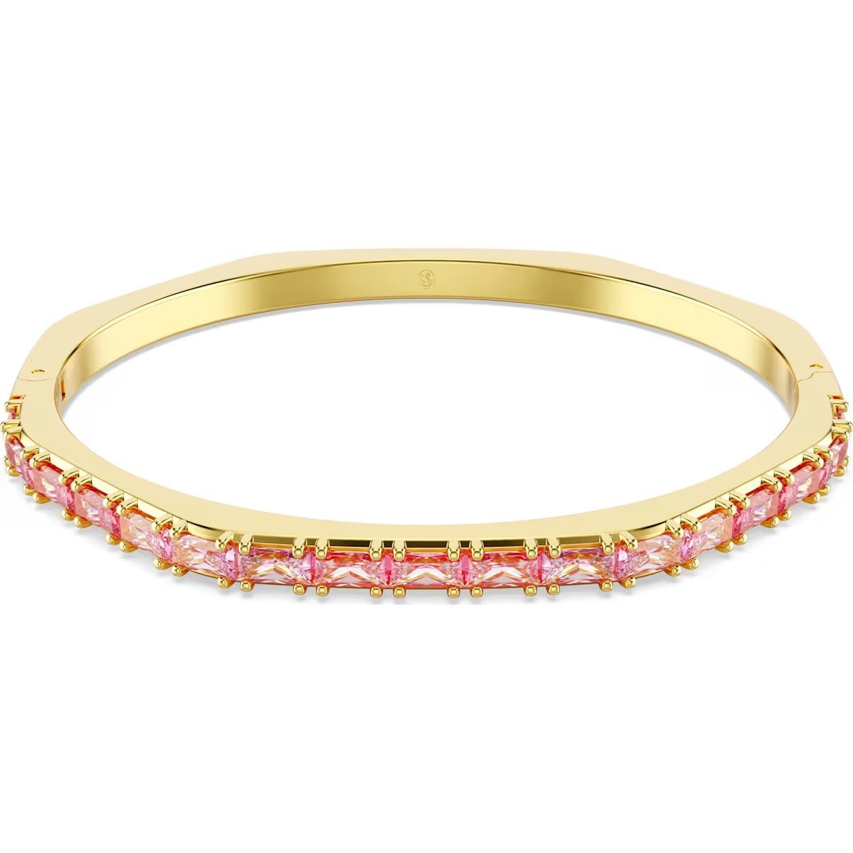 Révélez votre style au quotidien avec ce bracelet-jonc Matrix à charnière. Ce design au placage de ton ou reprend la forme octogonale emblématique de Swarovski et s'orne avec malice d'un dégradé de Swarovski Zirconia roses taille baguette, sertis horizontalement. Parfait en accumulation avec d'autres bracelets-joncs Matrix assortis, il se pare entièrement de la couleur signature de Swarovski pour exprimer toute votre splendeur.