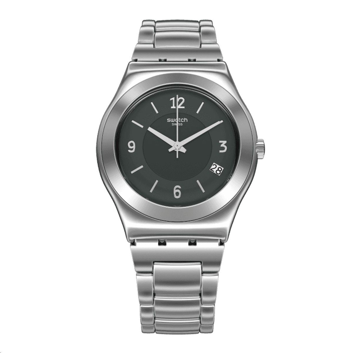 Ni trop grande, ni trop petite, la MIDDLESTEEL (YLS468G) a tout bon ! Son cadran vert foncé, décoré d'appliqués Swatch, dispose d'une fenêtre de date façon index, tandis que son bracelet en acier inoxydable est assorti à sa lunette.