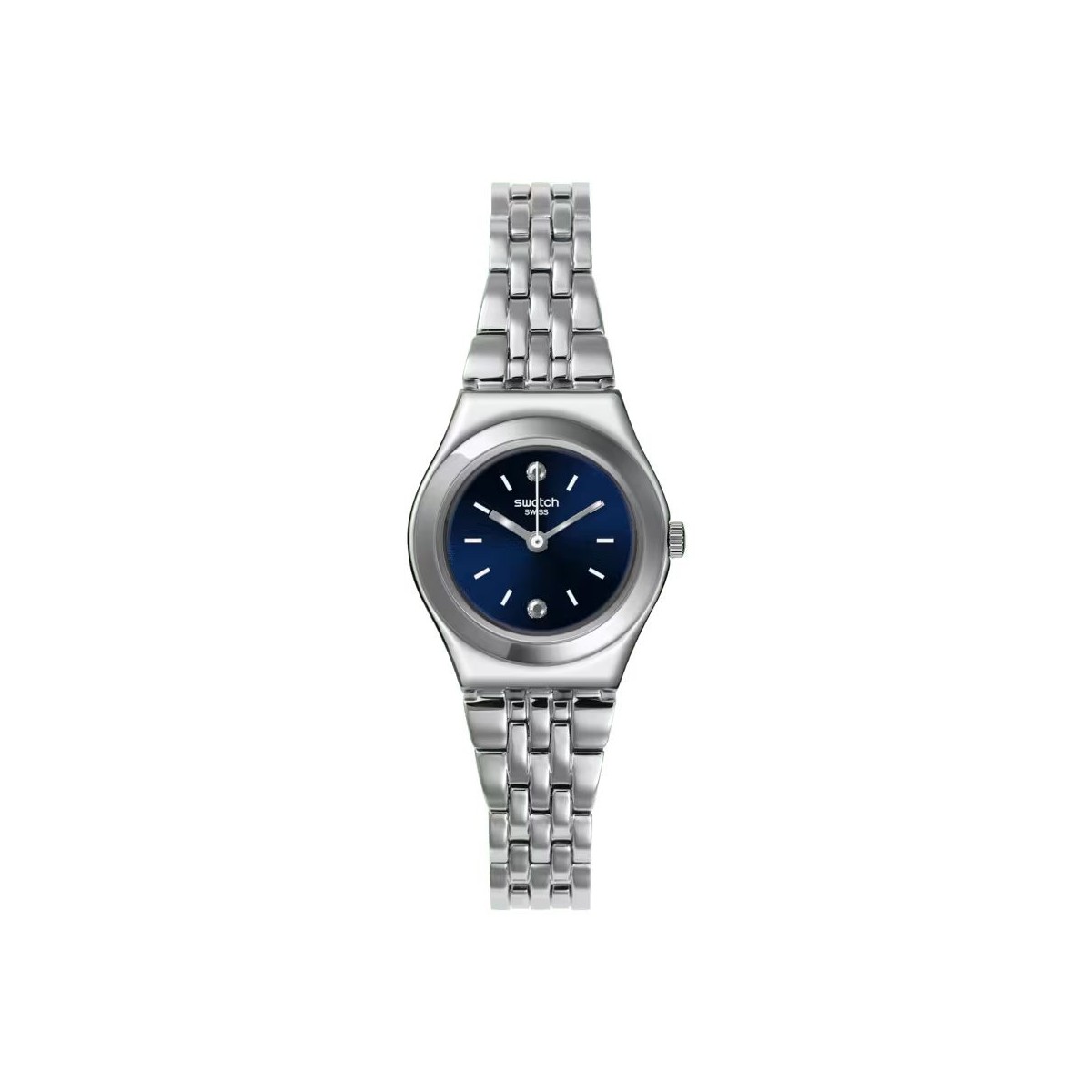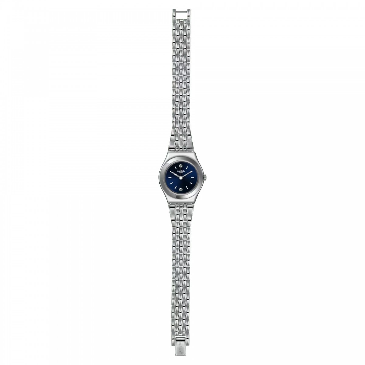 Glamour subtil. Élégance naturelle. La montre SLOANE (YSS288G) arbore un cadran bleu brossé-soleil avec des indexes minimalistes blancs et deux cristaux transparents. Pur et classique, ce style est fini avec un acier inoxydable brillant de la lunette au boîtier, en passant par le bracelet ajustable.