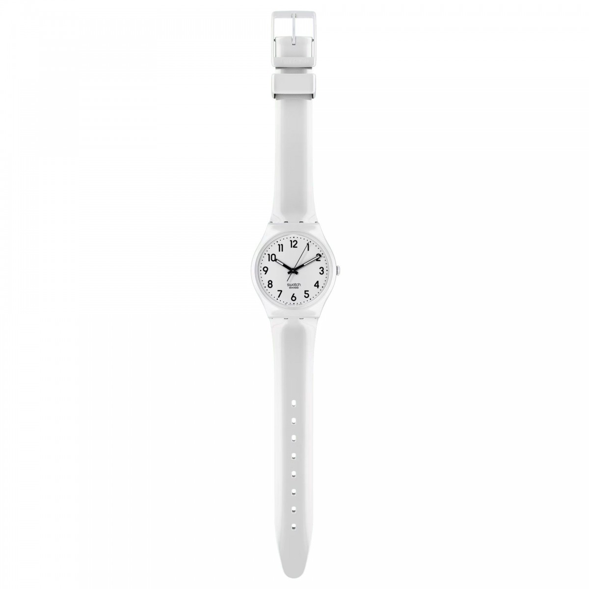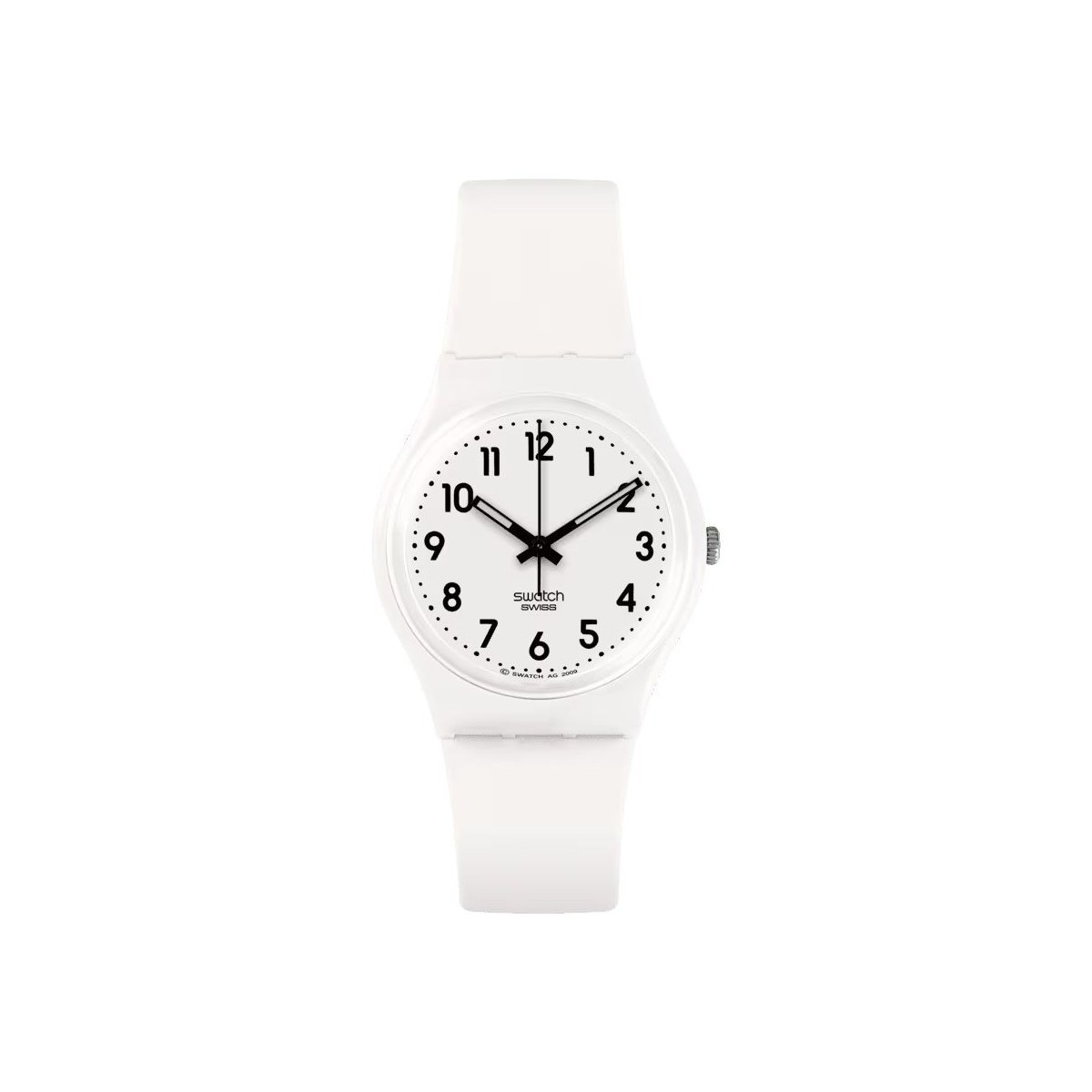 Cette montre minimaliste présente un cadran blanc avec des détails noirs. Son boîtier biosourcé blanc et son bracelet blanc renforcent son aspect épuré.