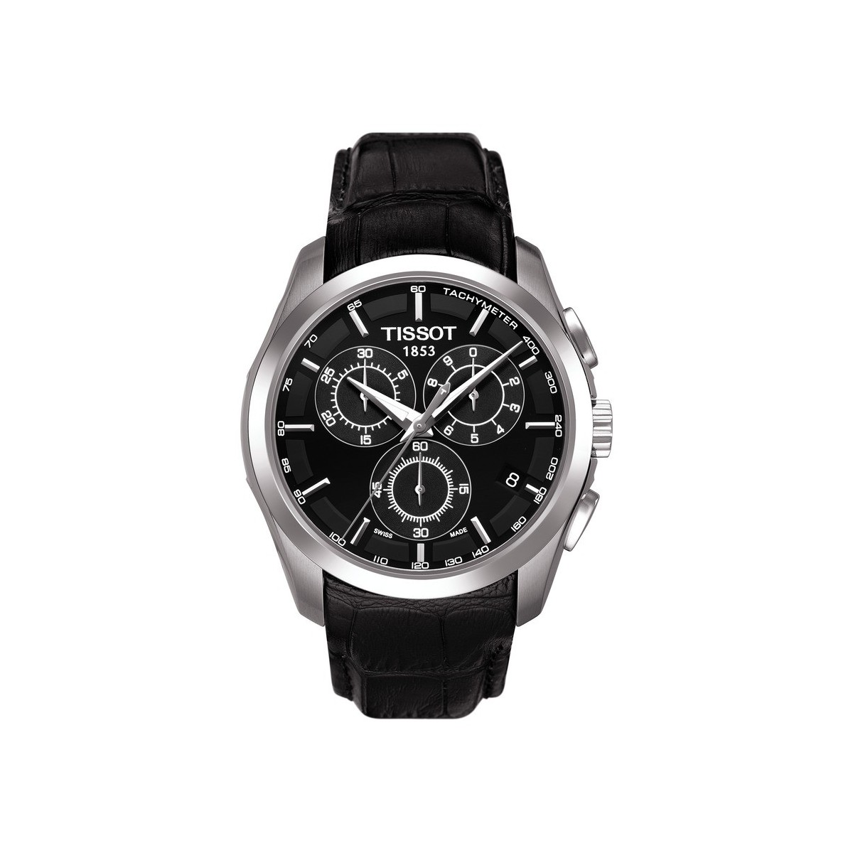 Inspirée du monde de la mode, la Tissot Couturier est une montre élégante qui reflète une attention sans compromis au détail. Elle renferme un mouvement quartz de fabrication suisse. Son cadran noir est protégé par une glace saphir inrayable garantissant robustesse et lisibilité. La montre possède une fonction chronographe et une échelle tachymètrique.