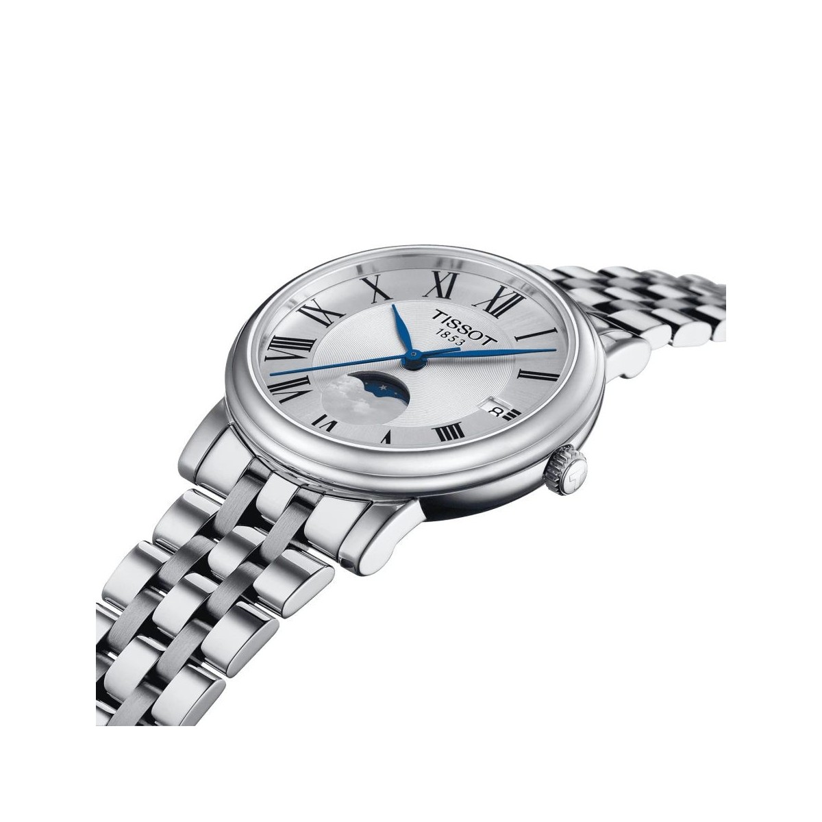 La Carson, chef d'œuvre horloger à arborer en tout lieu et en toute occasion, est le compagnon idéal pour faire de chaque instant un temps fort de votre vie. Avec son design épuré, son goût sûr et ses indications de phases de lune, la nouvelle collection Tissot Carson Premium Lady Moonphase tombe juste à tous les coups.