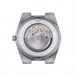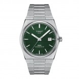 La Tissot PRX Powermatic 80 est dotée d'un verre saphir inrayable et antireflet ainsi que d'un fond en verre minéral. Cette version a un cadran vert avec index et un bracelet en acier inoxydable 316L avec boucle déployante papillon avec poussoirs.