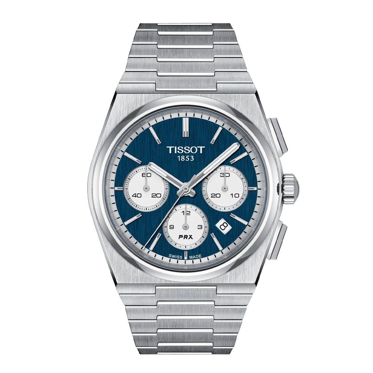 La collection PRX s'agrandit avec la Tissot PRX Automatic Chronograph. Son design iconique des années 1970 a conquis les amateurs de montre en quête d'authenticité. Avec un diamètre de 42 mm, le boitier acier satiné et son bracelet intégré, cette montre chronographe s'adapte à tous les poignets et à toutes les occasions. Le cadran bleu et les compteurs blancs apportent élégance et caractère à ce garde-temps.