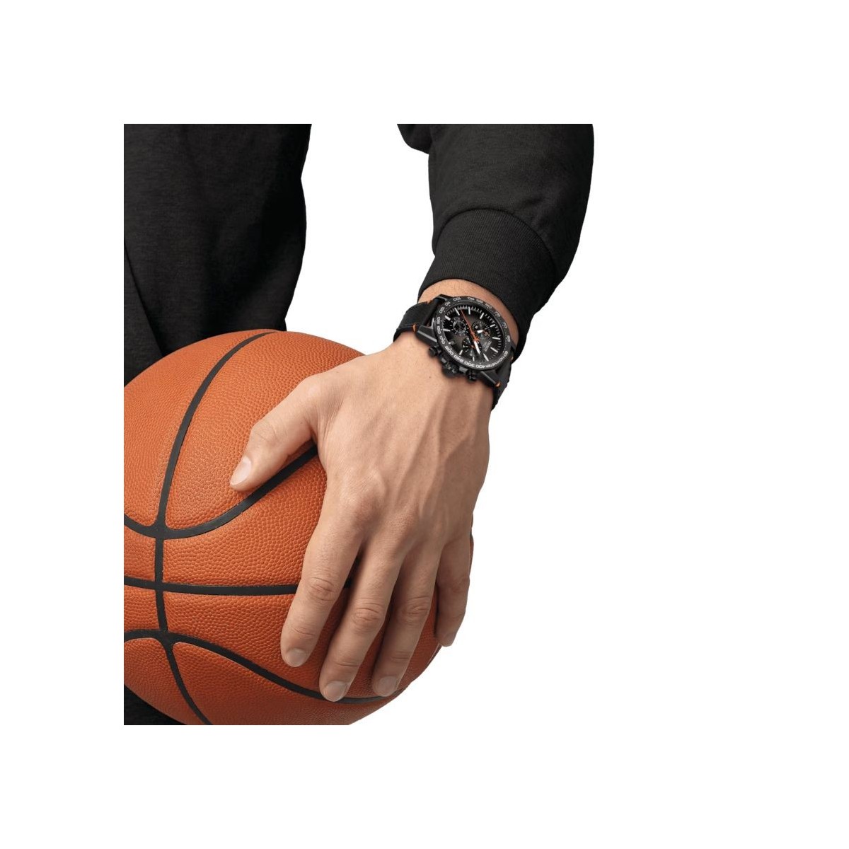 La Tissot Supersport Chrono est une montre idéale pour les hommes sportifs. Ce chronographe de 45,5 mm est doté d'un mouvement à quartz de fabrication Suisse. Son cadran reprend le motif de l'emblématique panier de basket. Le boitier en acier inoxydable PVD noir est surmonté d'une lunette avec échelle tachymétrique et monté sur un bracelet en cuir avec surpiqûres orange.